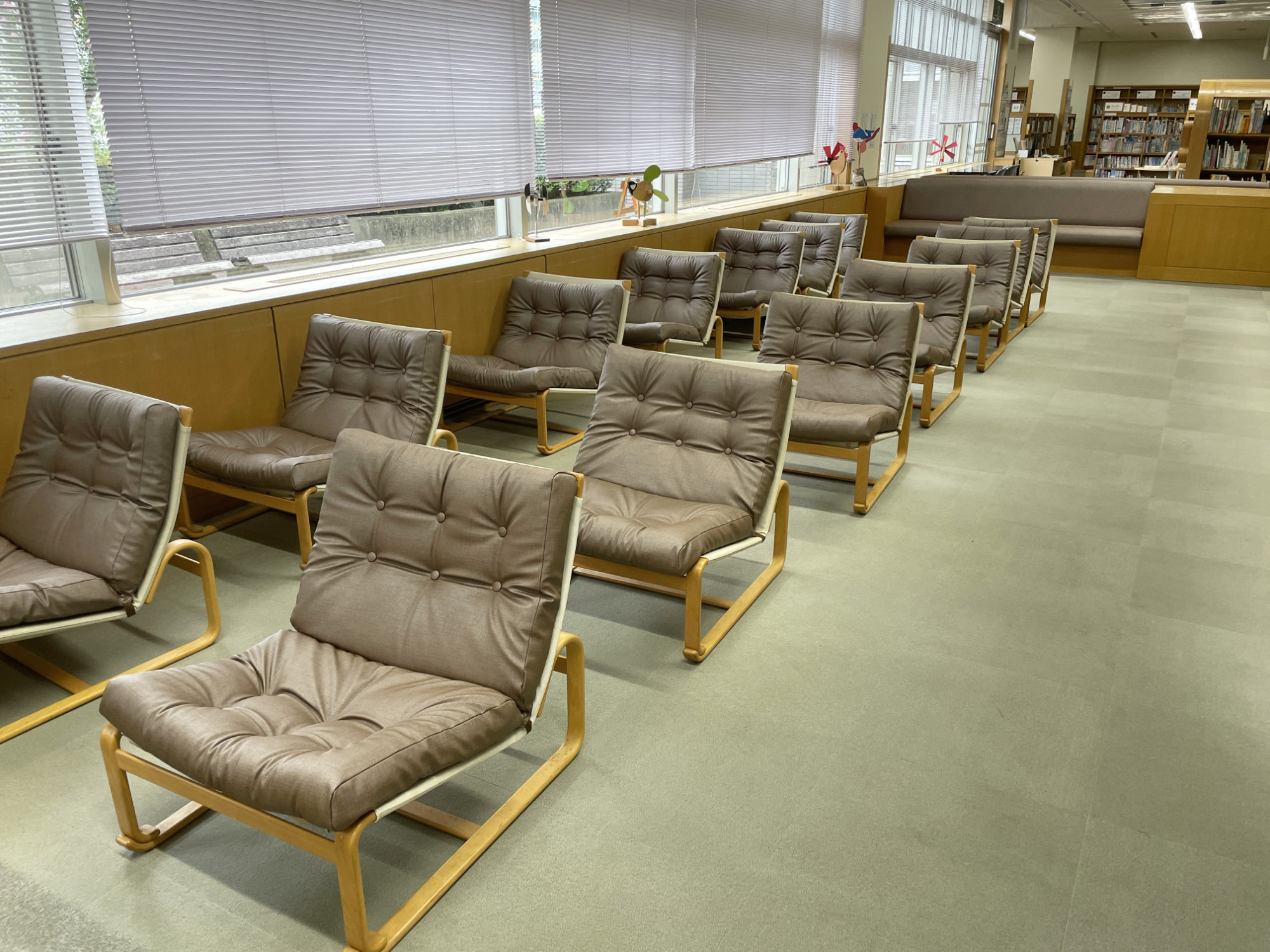 新しい色がもたらす控えめな深さが、図書館の雰囲気とすっと溶け合い、全体の印象を静かに引き締めてくれたように感じます。家具ひとつの張替えでも、場の表情が変わることを改めて実感した瞬間でした。