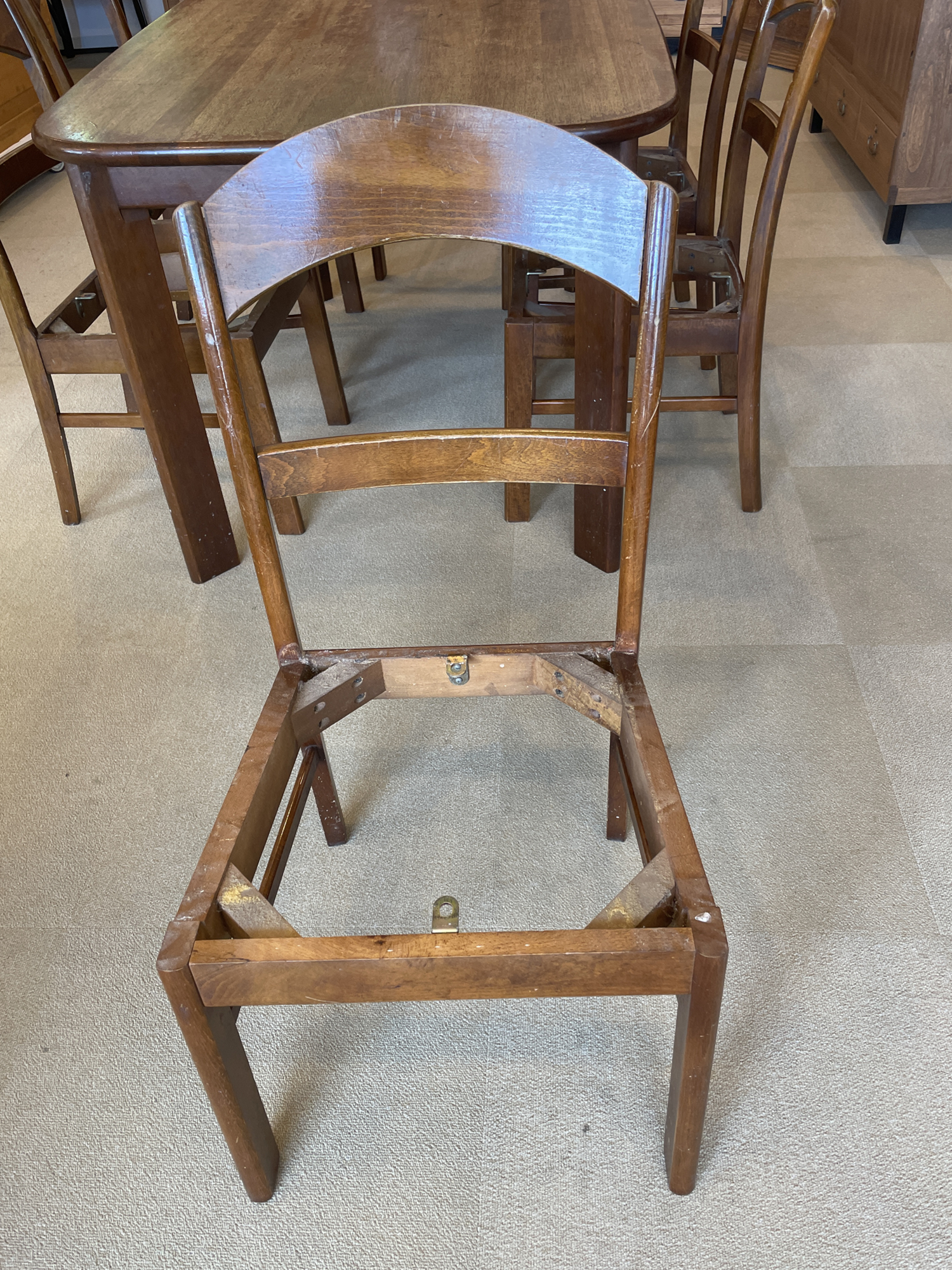 椅子もフレームの補修と塗装を行い、座面内部のウレタンを新しいものへ交換しています。