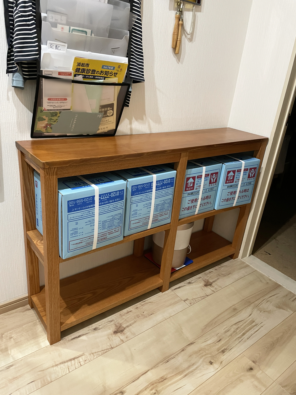 もう一方は、ウォーターサーバーの替えボトルを収納する棚として生まれ変わりました。