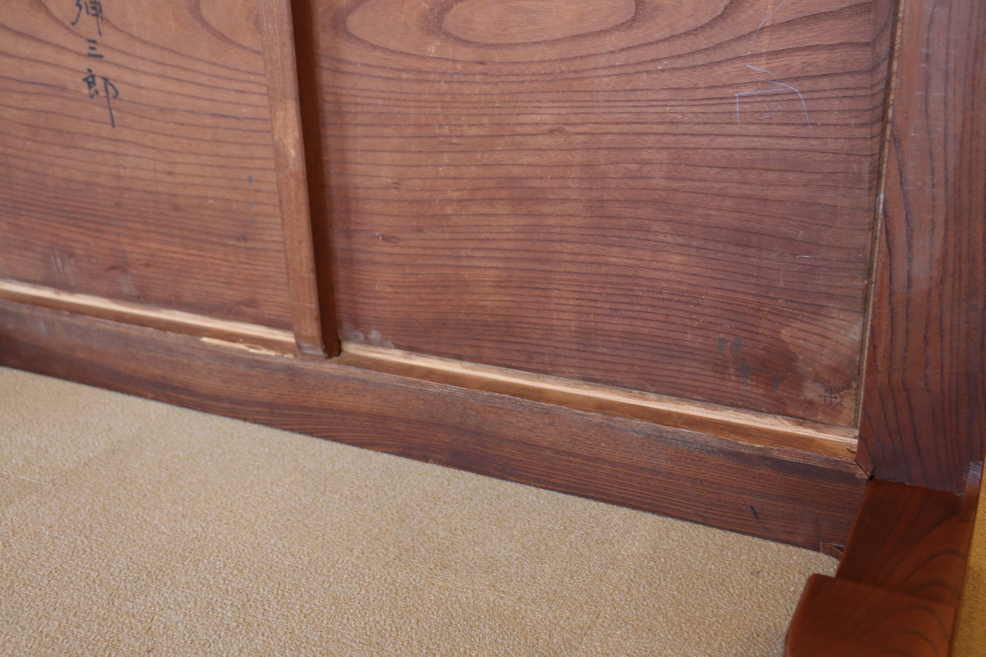 上の画像は修理後のお写真ですが、裏側からそっと覗くと、足した木がしっかりと支えている様子がわかります。